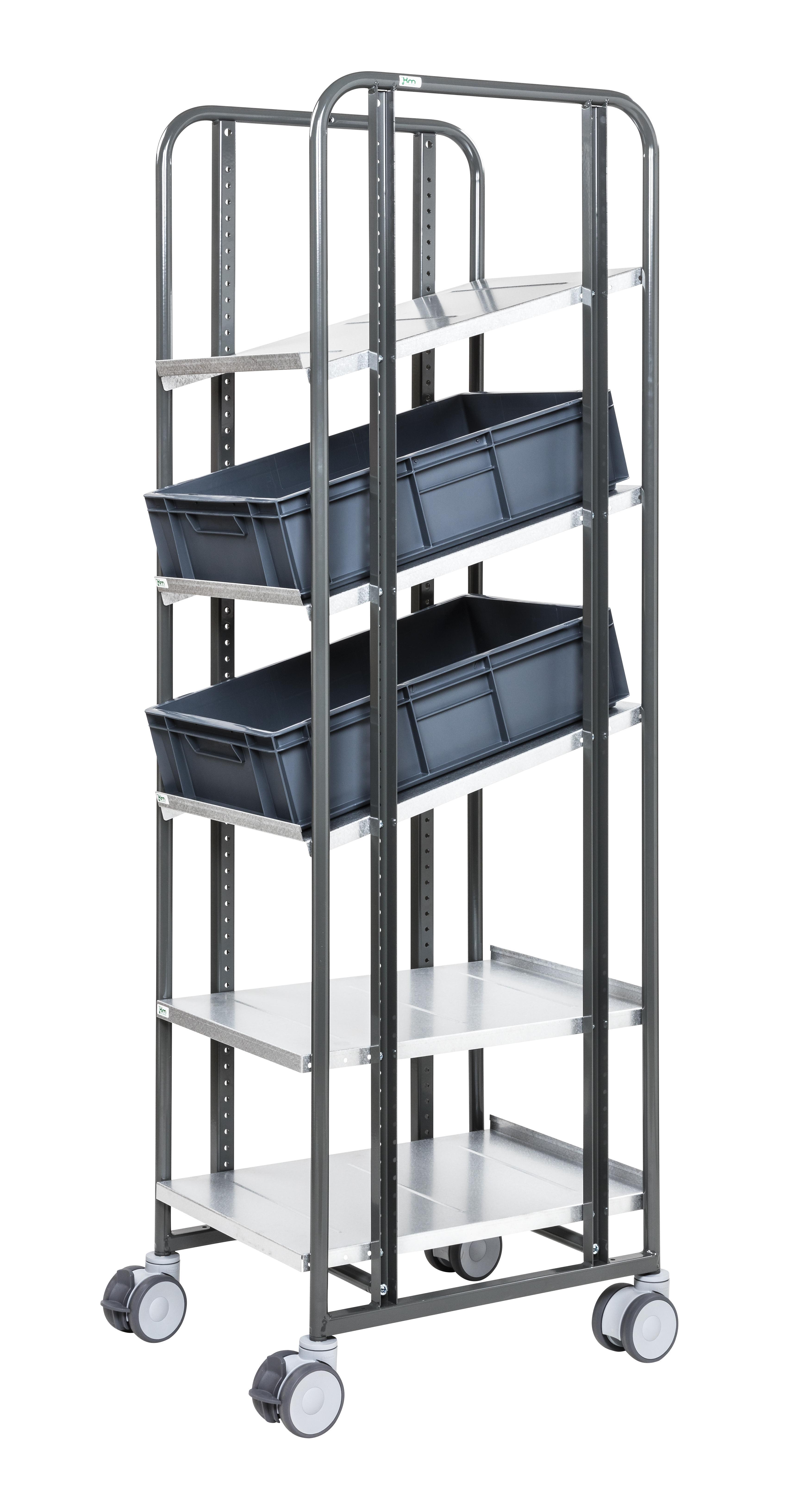Verniciato a polvere. Ripiani regolabili. Dimensione interna: 420 x 540 x 1660 mm. 5 ripiani. Capacità ripiani: 50 kg. Ruote: 4 girevoli 2 con freno. Diametro ruote: 100 mm.