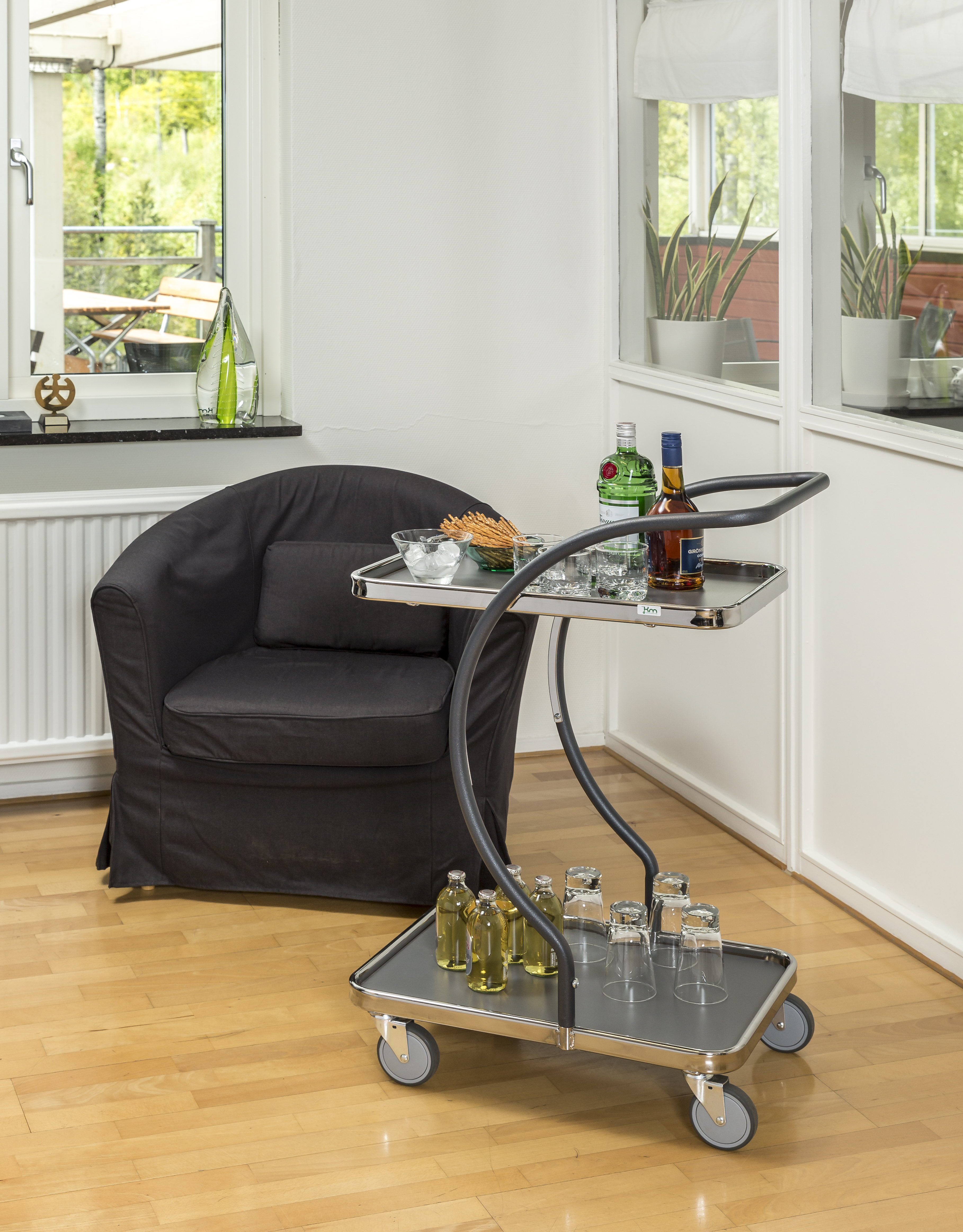 Carrello portatutto con 2 ripiani. Facile da manovrare e girare grazie al suo design singolare.