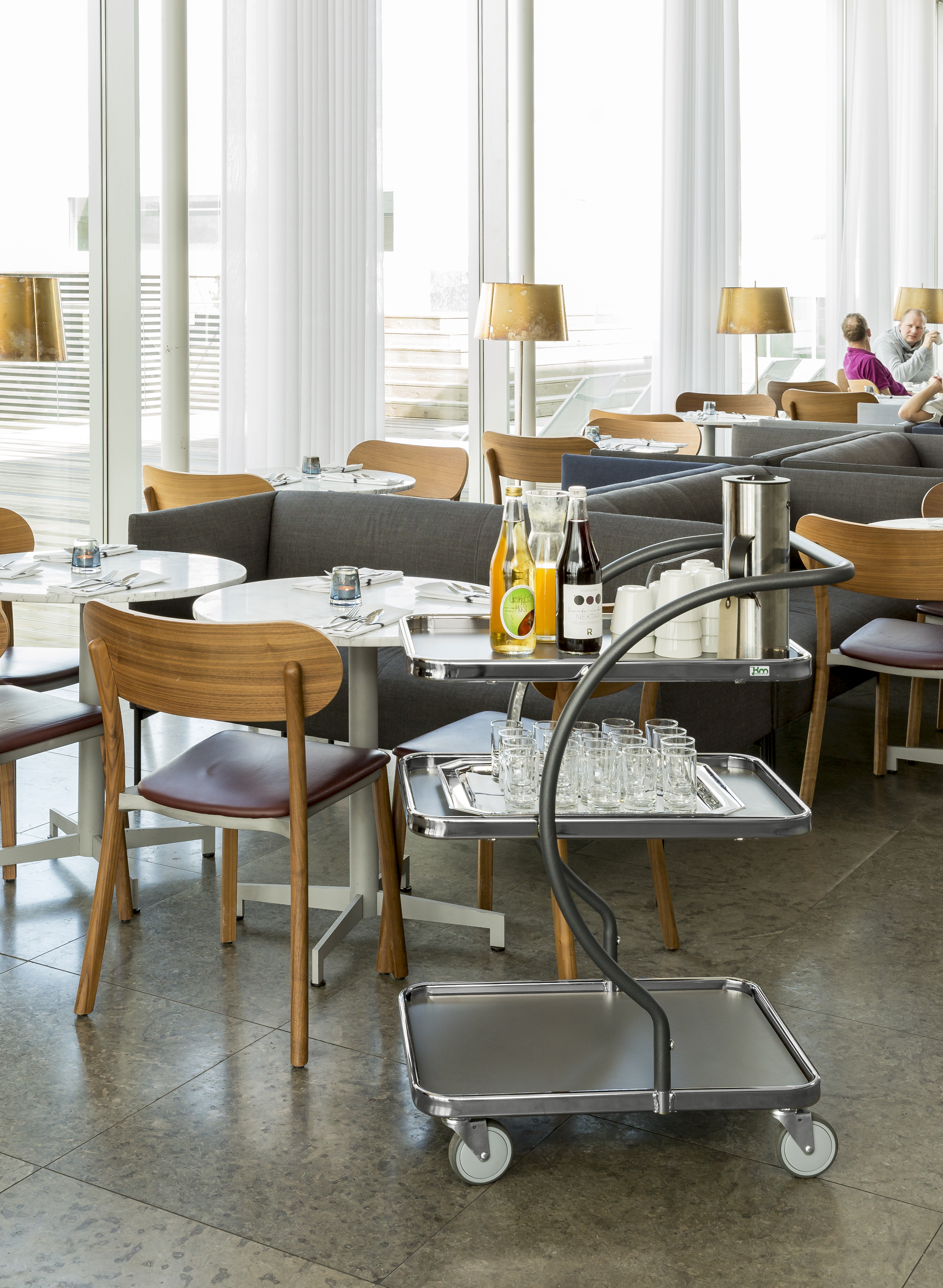 Carrello di servizio con 3 ripiani. Facile da manovrare e girare grazie al suo design singolare.