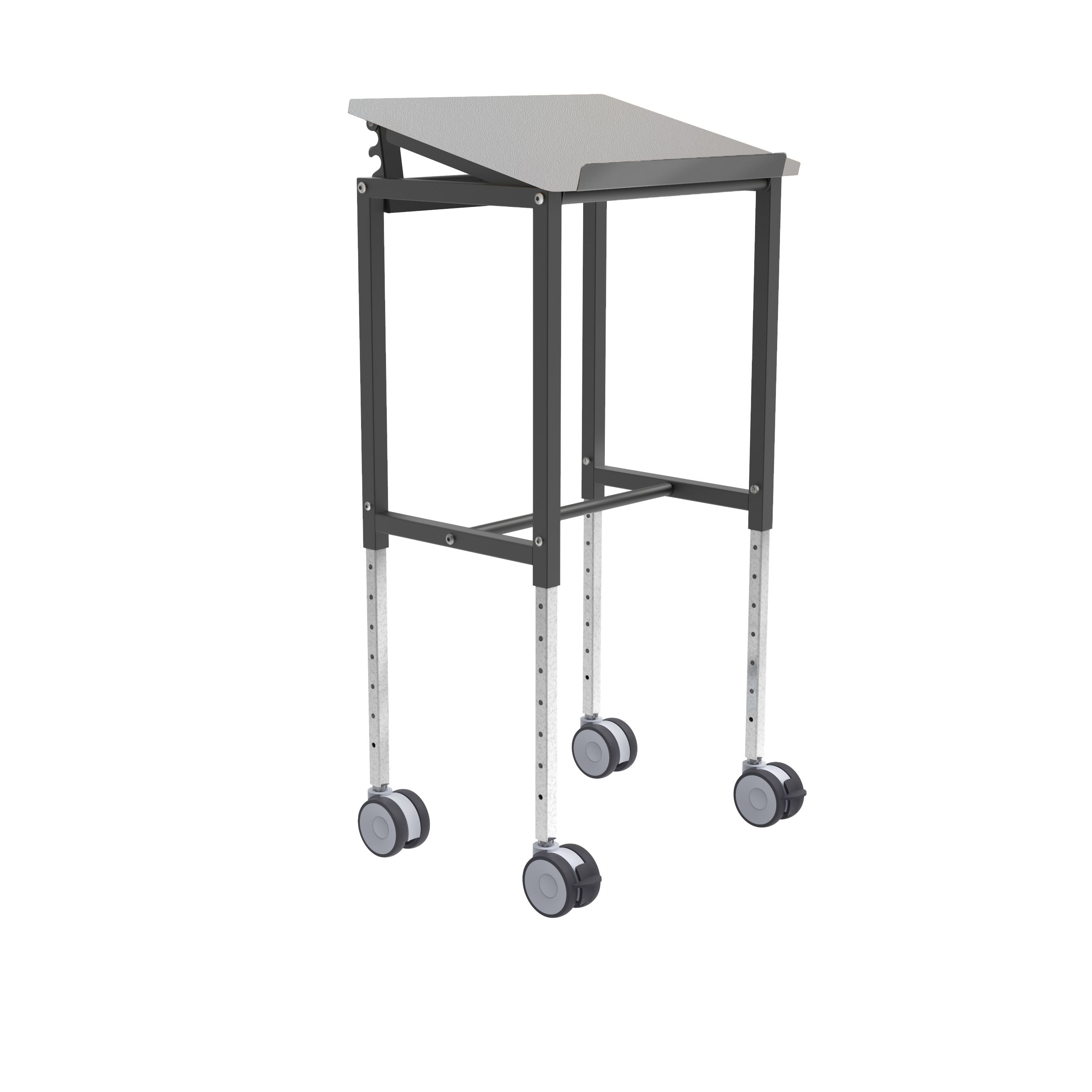 Altezza regolabile, 720-1100 con passi di 50 mm. Ruote: 4 girevoli 2 con freno. Diametro ruote: 100 mm.